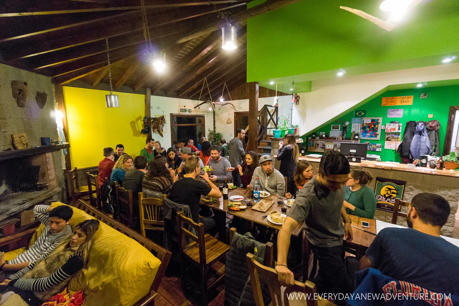 Ok, like I said, it was Christmas Eve when we arrived and the hostel was packed full - people were even crashing on the couches for the night! Given the reviews of this hostel on Trip Advisor, it's no wonder that it was booked solid. A great breakfast, clean bathrooms, helpful and kind staff, and good location were among its many praises. But those aren't the only reasons why we were there - I had discovered that Hostel I Keu Ken also throws quite the Christmas Eve party, and if we weren't going to be at the party at home, we were definitely going to find some merriment in El Calafate! I had no idea how much it would cost, but I figured it couldn’t be THAT outrageous - I mean, it's hostel food. Sure, a whole lamb cooked outside, some salad, potatoes, chorizo, bread, and wine…lots and lots of wine….but nothing outrageous. Turns out our night of merriment ended up costing 400 pesos per person, about $30 per person, which is a lot for Argentina. And they didn't tell us ahead of time, they just asked if we wanted in or not when I booked (yes, I should have asked, but honestly, we were doing it no matter how much it was!). They told us that the price just covers the cost of the meal, but we think that might be a stretch. For that price we expected the food to a bit more plentiful - everything seemed to run out. At least there was plenty of cheap wine though! They left out the extra bottles of wine for us o take as we please, so we helped ourselves to four unopened bottles the end of the night, around 4am. Ok, I guess we got our money's worth!