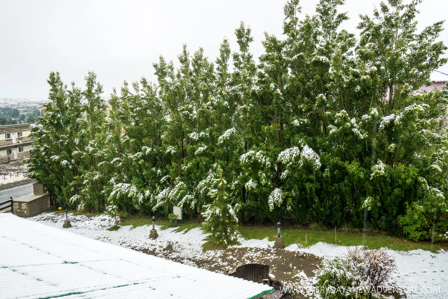 We woke up the next morning to my very first white Christmas! It snowed overnight, and for most of Christmas Day - a rare occurrence for El Calafate in the middle of summer! While it was a fairly light dusting, it was enough to stick, and it looked gorgeous. Most people around the hostel were busy making phone calls and skype calls to family all day, or lounging around with the ginormous black lab puppy, Floyd, or cooking meals in the communal kitchen. Ahh…cooking meals - we desperately needed to find some groceries! Since we had arrived after the groceries stores had closed the day before, and most of them were supposedly closed for the holiday, this was going to be a rather difficult task. After devouring our breakfast we set off to find some food to cook Christmas dinner. Off we went in the rain/snow mixture that was falling around us, splashing in puddles, and enjoying the wintery cold. Sure enough, the grocery store was closed. A bit farther down the road, though, was our saving grace - a little, neon green corner store was opened, run by the nicest lady in the world who sold us pasta, parmesan, and sauce packets! After making our own skype calls home when we got back, we sat down to steaming bowls of pasta with ready-made sauce, and toasted to one of our favorite Christmas dinners to date. A white Christmas full of joy in a beautiful place surrounded by happy people and simple food. It wasn't home, but it sure was awesome.