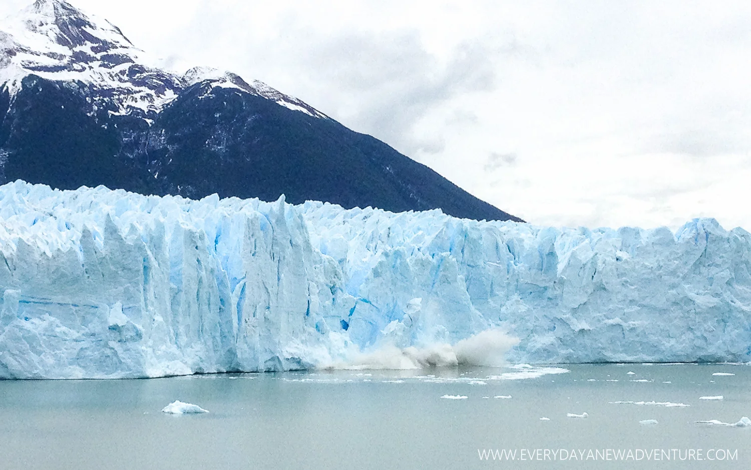 A big chunk of the Perito Moreno glacier calved off. This glacier is special in that it calves and grows at the same rate, so it never gets measurably smaller.