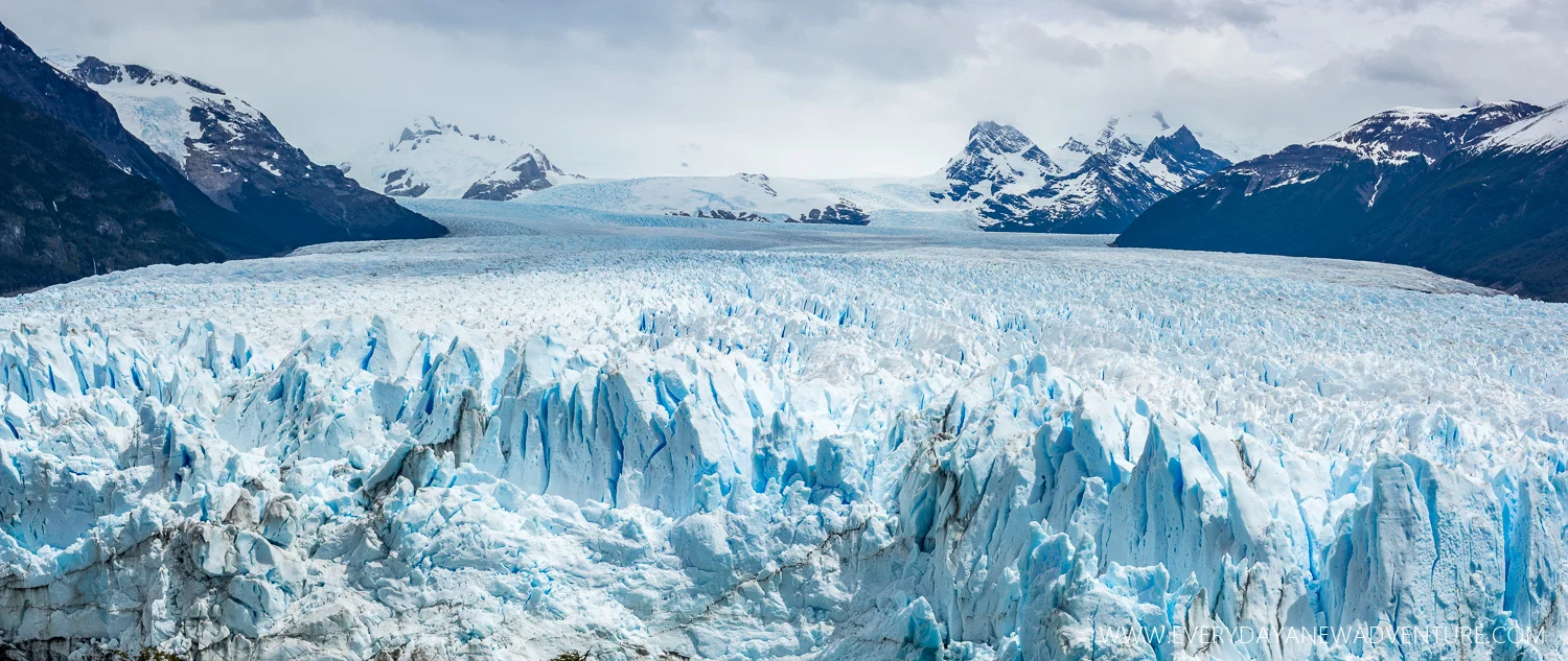 Before heading back to our hostel, we had one final stop - The Balconies, a viewing point where you can walk along balconies built into the hillside and see the whole glacier. We could clearly see that one side of the lake was higher than the other as the middle of the ice wall is presently touching land and blocking the flow of the water. This piece of ice is supposed to rupture every year and allow the water level to equalize, but it's been a few years since it's happened. We really enjoyed our experience on the Perito Moreno Glacier, and loved seeing it from The Balconies. It's an excursion we definitely recommend!